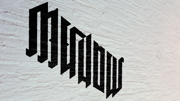 Custom typographic ambigram. Complicated design, simple & clean execution. Ideation, sketch, design, photograph, build, edit, and complete.